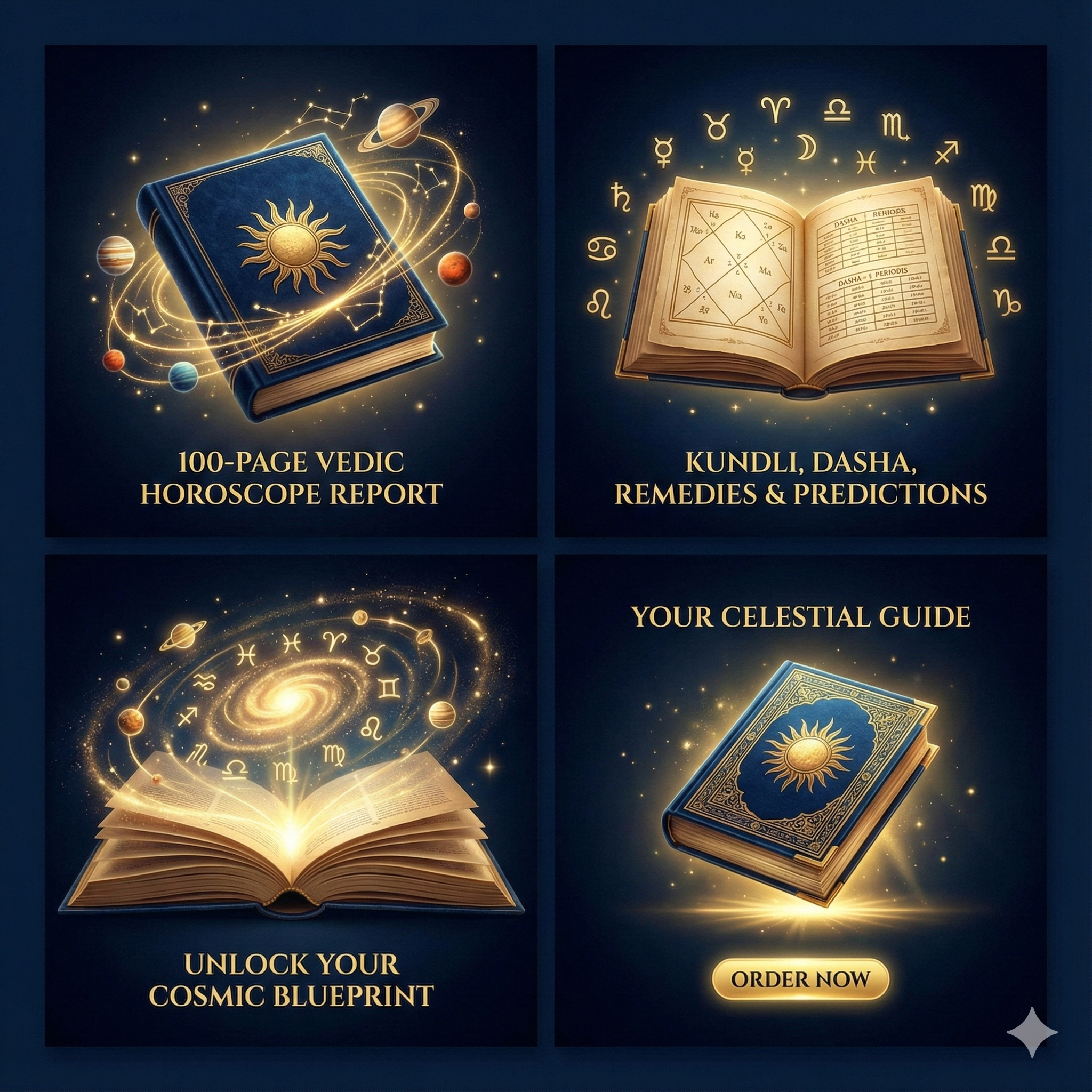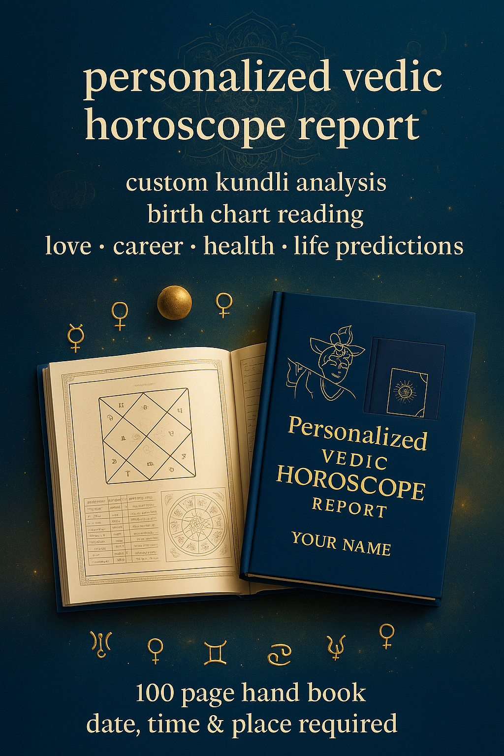 Unlock the secrets of your destiny with our Personalized Vedic Horoscope Report, created using authentic astrology calculations based on your exact birth details. This in-depth analysis reveals your personality, opportunities, challenges, and the planetary forces shaping your life.